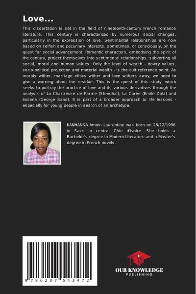 This dissertation is set in the field of nineteenth-century French romance literature. This century is characterized by numerous social changes, particularly in the expression of love. Sentimental relationships are now based on selfish and pecuniary interests, sometimes, or consciously, on the quest for social advancement. Romantic characters, embodying the spirit of the century, project themselves into sentimental relationships, subverting all social, moral and human values. Only the level of wealth - dowry values, socio-political projection and material wealth - is the cult reference point. As morals wither, marriage ethics wither and love withers away, we need to give a warning about the residue. This is the quest of this study, which seeks to portray the practice of love and its various derivatives through the analysis of La Chartreuse de Parme (Stendhal), La Curée (Emile Zola) and Indiana (George Sand). It is part of a broader approach to life lessons - especially for young people in search of an archetype.
