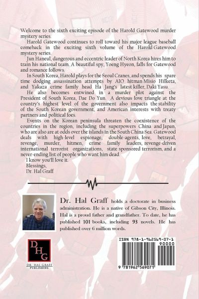Welcome to the sixth exciting episode of the Harold Gatewood murder mystery series. Harold Gatewood continues to roll toward his major league baseball comeback in the exciting sixth volume of the Harold Gatewood mystery series. Jun Haneul, dangerous and eccentric leader of North Korea hires him to train his national team. A beautiful spy, Yoeng Hyeon, falls for Gatewood and romance follows. In South Korea, Harold plays for the Seoul Cranes, and spends his spare time dodging assassination attempts by AIO hitman Misio Hilketa, and Yakaza crime family head Ha Jang's latest killer, Daki Yasu. He also becomes entwined in a murder plot against the President of South Korea, Dae Do Yun. A devious love triangle at the country's highest level of the government also impacts the stability of the South Korean government, and American interests with treaty partners and political foes. Events on the Korean peninsula threaten the coexistence of the countries in the region, including the superpowers China and Japan, who are also are at odds over the islands in the South China Sea. Gatewood deals with high-level espionage, double-agents, love, betrayal, revenge, murder, hitmen, crime family leaders, revenge-driven international terrorist organizations, state sponsored terrorism, and a never-ending list of people who want him dead.