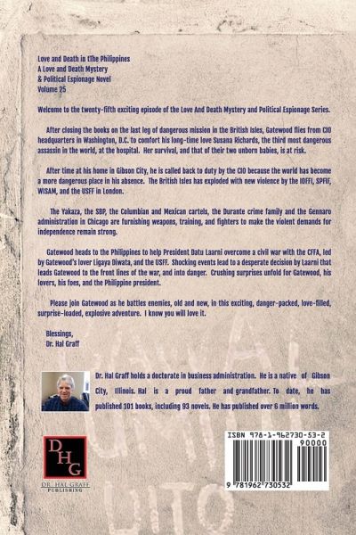 Love And Death In The Philippines A Love And Death Mystery & Political Espionage Novel Volume 25 Welcome to the twenty-fifth exciting episode of the Love And Death Mystery and Political Espionage Series. After closing the books on the last leg of dangerous mission in the British Isles, Gatewood flies from CIO headquarters in Washington, D.C. to comfort his long-time love Susana Richards, the third most dangerous assassin in the world, at the hospital. Her survival, and that of their two unborn babies, is at risk. After time at his home in Gibson City, he is called back to duty by the CIO because the world has become a more dangerous place in his absence. The British Isles has exploded with new violence by the IOFFI, SPFIF, WISAM, and the USFF in London. The Yakuza, the SBP, the Columbian and Mexican cartels, the Durante crime family and the Gennaro administration in Chicago are furnishing weapons, training, and fighters to make the violent demands for independence remain strong. Gatewood heads to the Philippines to help President Datu Laarni overcome a civil war with the CFFA, led by Gatewood's lover Ligaya Diwata, and the USFF. Shocking events lead to a desperate decision by Laarni that leads Gatewood to the front lines of the war, and into danger. Crushing surprises unfold for Gatewood, his lovers, his foes, and the Philippine president. Please join Gatewood as he battles enemies, old and new, in this exciting, danger-packed, love-filled, surprise-loaded, explosive adventure. I know you will love it. Blessings, Dr. Hal Graff
