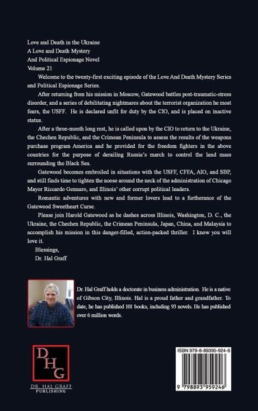 Love And Death In The Ukraine A Love And Death Mystery And Political Espionage Novel Volume 21 Welcome to the twenty-first exciting episode of the Love And Death Mystery Series and Political Espionage Series. After returning from his mission in Moscow, Gatewood battles post-traumatic-stress disorder, and a series of debilitating nightmares about the terrorist organization he most fears, the USFF. He is declared unfit for duty by the CIO, and is placed on inactive status. After a three-month long rest, he is called upon by the CIO to return to the Ukraine, the Chechen Republic, and the Crimean Peninsula to assess the results of the weapons purchase program America and he provided for the freedom fighters in the above countries for the purpose of derailing Russia's march to control the land mass surrounding the Black Sea. Gatewood becomes embroiled in situations with the USFF, CFFA, AIO, and SBP, and still finds time to tighten the noose around the neck of Chicago Mayor Riccardo Gennaro's administration and Illinois' other corrupt political leaders. Romantic adventures with new and former lovers lead to a furtherance of the Gatewood Sweetheart Curse. Please join Harold Gatewood as he dashes across Illinois, Washington, D. C., the Ukraine, the Chechen Republic, the Crimean Peninsula, Japan, China, and Malaysia to accomplish his mission in this danger-filled, action-packed thriller. I know you will love it. Blessings, Dr. Hal Graff
