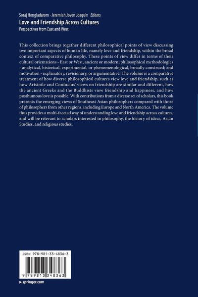 This collection brings together different philosophical points of view discussing two important aspects of human life, namely love and friendship, within the broad context of comparative philosophy. These points of view differ in terms of their cultural orientations - East or West, ancient or modern; philosophical methodologies - analytical, historical, experimental, or phenomenological, broadly construed; and motivation - explanatory, revisionary, or argumentative. The volume is a comparative treatment of how diverse philosophical cultures view love and friendship, such as how Aristotle and Confucius' views on friendship are similar and different, how the ancient Greeks and the Buddhists view friendship and happiness, and how posthumous love is possible. With contributions from a diverse set of scholars, this book presents the emerging views of Southeast Asian philosophers compared with those of philosophers from other regions, including Europe and North America. The volume thus provides a multi-faceted way of understanding love and friendship across cultures, and will be relevant to scholars interested in philosophy, the history of ideas, Asian Studies, and religious studies.