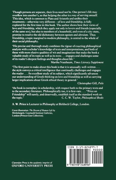 Reissued in 1997 with corrections and a new Afterword, this book fully explores for the first time an idea common to Plato and Aristotle, which unites their treatments-- otherwise very different--of love and friendship. The idea is that although persons are separate, their lives need not be. One person's life may overflow into another's, and as such, helping another person is a way of serving oneself. The author shows how their view of love and friendship, within not only personal relationships, but also the household and even the city-state, promises to resolve the old dichotomy between egoism and altruism.