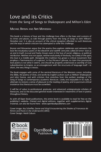 This book is a history of love and the challenge love offers to the laws and customs of its times and places, as told through poetry from the Song of Songs to John Milton's Paradise Lost. It is also an account of the critical reception afforded to such literature, and the ways in which criticism has attempted to stifle this challenge. Bryson and Movsesian argue that the poetry they explore celebrates and reinvents the love the troubadour poets of the eleventh and twelfth centuries called fin'amor: love as an end in itself, mutual and freely chosen even in the face of social, religious, or political retribution. Neither eros nor agape, neither exclusively of the body, nor solely of the spirit, this love is a middle path. Alongside this tradition has grown a critical movement that employs a 'hermeneutics of suspicion', in Paul Ricoeur's phrase, to claim that passionate love poetry is not what it seems, and should be properly understood as worship of God, subordination to Empire, or an entanglement with the structures of language itself - in short, the very things it resists. The book engages with some of the seminal literature of the Western canon, including the Bible, the poetry of Ovid, and works by English authors such as William Shakespeare and John Donne, and with criticism that stretches from the earliest readings of the Song of Songs to contemporary academic literature. Lively and enjoyable in its style, it attempts to restore a sense of pleasure to the reading of poetry, and to puncture critical insistence that literature must be outwitted. It will be of value to professional, graduate, and advanced undergraduate scholars of literature, and to the educated general reader interested in treatments of love in poetry throughout history.