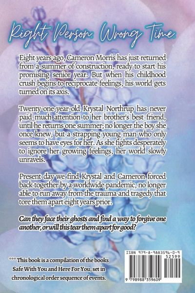 ***For readers 18+. Please check the trigger warnings listed on third page!! Eight years ago, Cameron Morris has just returned from a summer of construction, ready to start his promising senior year. But when his childhood crush begins to reciprocate feelings, his world gets turned on its axis. They seem like a match made in heaven- the only problem? She has a boyfriend, and Cameron is only seventeen. Twenty-one-year-old Krystal Northrup has never paid much attention to her brother's best friend, until he returns one summer; no longer the boy she once knew, but a strapping young man who only seems to have eyes for her. As she fights desperately to ignore her growing feelings, her world slowly unravels. Present day we find Krystal and Cameron forced back together by a worldwide pandemic, no longer able to run away from the trauma and tragedy that tore them apart eight years prior. Can they face their ghosts and find a way to forgive one another, or will this tear them apart for good? *** This book is a compilation of the books Safe With You and Here For You, set in chronological order sequence of events.