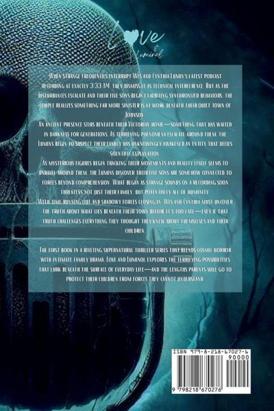 LOVE AND LUMINOL When strange frequencies interrupt Wes and Cynthia Lumin's latest podcast recording at exactly 3:33 AM, they dismiss it as technical interference. But as the disturbances escalate and their five sons begin exhibiting synchronized behaviors, the couple realizes something far more sinister is at work beneath their quiet town of Johnson. An ancient presence stirs beneath their Victorian home-something that has waited in darkness for generations. As terrifying phenomena escalate around them, the Lumins begin to suspect their family has unknowingly awakened an entity that defies scientific explanation. As mysterious figures begin tracking their movements and reality itself seems to unravel around them, the Lumins discover their five sons are somehow connected to forces beyond comprehension. What began as strange sounds on a recording soon threatens not just their family, but potentially all of humanity. With time running out and shadowy forces closing in, Wes and Cynthia must uncover the truth about what lies beneath their town before it's too late-even if that truth challenges everything they thought they knew about themselves and their children. The first book in a riveting supernatural thriller series that blends cosmic horror with intimate family drama, LOVE & LUMINOL explores the terrifying possibilities that lurk beneath the surface of everyday life-and the lengths parents will go to protect their children from forces they cannot understand.