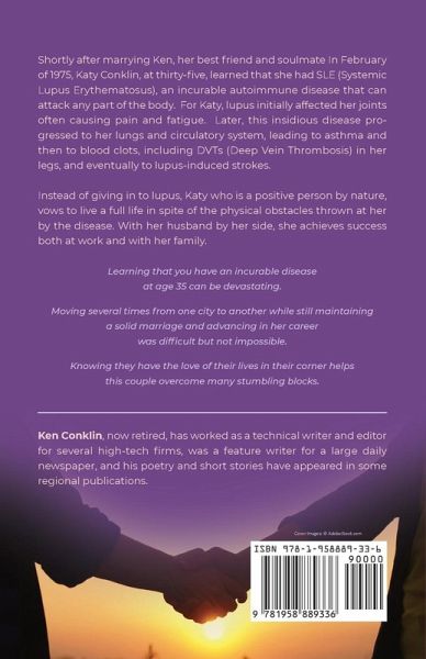 Shortly after marrying Ken, her best friend and soulmate in February of 1975, Katy Conklin, at thirty-five, learned that she had SLE (Systemic Lupus Erythematosus), an incurable autoimmune disease that can attack any part of the body. For Katy, lupus initially affected her joints often causing pain and fatigue. Later, this insidious disease progressed to her lungs and circulatory system, leading to asthma and then to blood clots, including DVTs (Deep Vein Thrombosis) in her legs, and eventually to lupus-induced strokes. Instead of giving in to lupus, Katy, a positive person by nature, vows to overcome the lupus obstacles and live as full a life as possible. She finds success in her work as a CEO of several branches of a non-profit organization. She also uses her music and acting ability to find fulfillment with a semi-professional chorus and by singing and acting with a retirement village entertainment company. With her husband by her side throughout her struggles, she achieves success in her work and in her daily life.