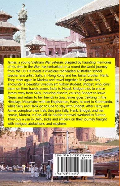 James, a 24 year old Vietnam Veteran, fraught with nightmares of his experience in the war, embarks on an around the world journey in 1969. He meets an alluring Australian redheaded woman, Sally, in Hong Kong and her foster brother, Hank. The three plan to join up in Bangkok, but the freighter Sally and Hank travel on stops in Manila and Singapore. James, who needs to get to Madras, India to spend time with his uncle there before his uncle returns to the US, has to leave Bangkok and misses meeting Sally and Hank. They meet again in Madras, India and travel together meeting a beautiful Swedish lady, Bridget, in Ajanta, India, who joins them and pairs up with Hank. In Nepal Bridget tries to take James away from Sally, but fails and in frustration returns to her cousin, Monica, in Goa. James goes trekking in Nepal with Harry, an English chap he met in Kathmandu, while Sally and Hank go to Goa to stay with Bridget and Monica. After James and Harry finish their trek they join Sally, Hank, Bridget, and Monica. They all decide to travel to Europe together. James buys a van in India, and they embark on the overland journey to Europe. In Afghanistan Hank is abducted because of an insult while buying hashish. The rest of the group are told to go to Bamyan and seek out Mahmood to find Hank. After finding Mahmood, who knows nothing of the kidnapping, Mahmood agrees to help them find Hank. Mahmood's rival warlord learns of Mahmood's offer to help find Hank, who is being held for ransom, and takes Hank from the hash sellers to extract concessions from Mahmood. Mahmood's men find where Hank is being held and attack the rival warlord's men and free Hank. Mahmood has Hank brought to his house because he is very ill and has a physician treat him. Hank recovers and is sent to his friends in Herat. The group continue to Iran. Hank decides to return to Australia in Tehran and Sally goes back with him to help with his recovery. Hanks shuns Sally and the family and goes to a cattle station in the outback. Sally gets her parents to loan her money and flies to Athens to meet up with James, who has gone to Crete, when James returns to Athens. In Crete James visits Knossos where he learns of travelers congregating in caves at location on the southwest coast called Matala and goes there and stay for weeks. When James returns to Athens, he calls Sally's home and learns she is in Athens. He goes to her hotel and after Sally berates for staying so long in Crete, he and Sally along with two American men and two French ladies, who James met in Matala set off for Germany in James's van. In Yugoslavia Sally is kidnapped by Afghan men sent by Mahmood's rival. James and the two Americans help James recover Sally from the Afghans, who they tie up and ditch in their car in the forest while they speed toward Austria. James and Sally drop off the two Americans and French ladies in Munich and speed to Frankfort and then to Paris where they finally stop, believing the Afghans can not still be following them and take in the sights before traveling on to London to visit Sally's uncle where Hank and his girlfriend, Amelia, whose father owns the cattle station where Hank has become the foreman, have gone to see Sally and James. James ends his journey in London and hopes he and Sally can overcome the traumas they both hold and strengthen their loving relationship.