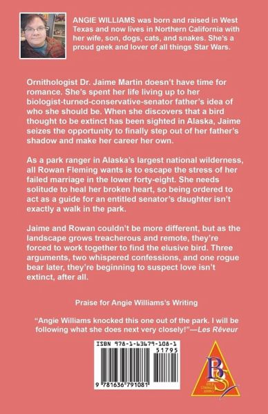 Ornithologist Dr. Jaime Martin doesn't have time for romance. She's spent her life living up to her biologist-turned-conservative-senator father's idea of who she should be. When she discovers that a bird thought to be extinct has been sighted in Alaska, Jaime seizes the opportunity to finally step out of her father's shadow and make her career her own. As a park ranger in Alaska's largest national wilderness, all Rowan Fleming wants is to escape the stress of her failed marriage in the lower forty-eight. She needs solitude to heal her broken heart, so being ordered to act as a guide for an entitled senator's daughter isn't exactly a walk in the park. Jaime and Rowan couldn't be more different, but as the landscape grows treacherous and remote, they're forced to work together to find the elusive bird. Three arguments, two whispered confessions, and one rogue bear later, they're beginning to suspect love isn't extinct, after all.