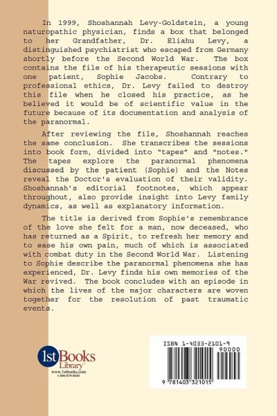 Love and Remembrance is presented as a nonfiction case study of a woman who consults a psychiatrist because of concern that paranormal events she has experienced are symptomatic of mental disorder. While treating her, the psychiatrist encounters his own revelations.