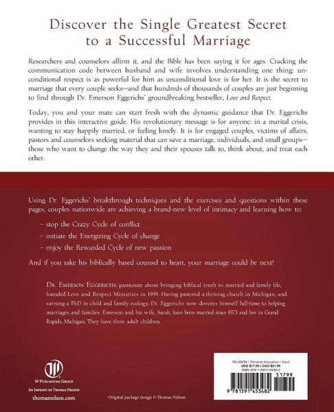 Based upon Ephesians 5:33 and extensive biblical and psychological research, Dr. Emerson Eggerichs reveals the power of unconditional love and unconditional respect and how husbands and wives can reap the benefits of marriage that God intended.