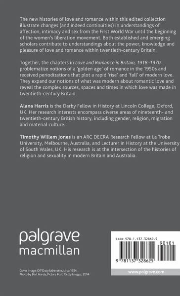 The new histories of love and romance offered within this edited collection illustrate the many changes, but also the surprising continuities in understandings of love, romance, affection, intimacy and sex from the First World War until the beginning of the Women's Liberation movement.