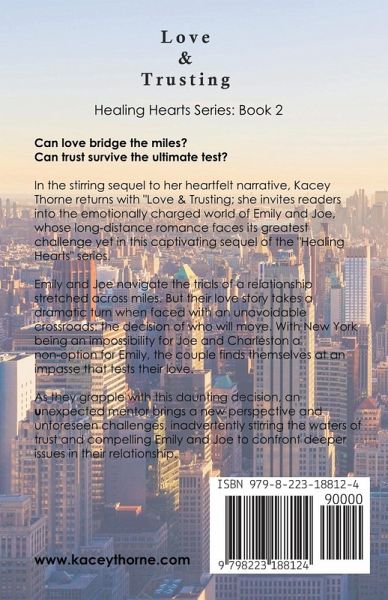 Can love bridge the miles? Can trust survive the ultimate test? In the stirring sequel to her heartfelt narrative, Kacey Thorne returns with "Love & Trusting; she invites readers into the emotionally charged world of Emily and Joe, whose long-distance romance faces its greatest challenge yet in this captivating sequel of the "Healing Hearts" series. Emily and Joe navigate the trials of a relationship stretched across miles. But their love story takes a dramatic turn when faced with an unavoidable crossroads: the decision of who will move. With New York being an impossibility for Joe and Charleston a non-option for Emily, the couple finds themselves at an impasse that tests their love. As they grapple with this daunting decision, an unexpected mentor brings a new perspective and unforeseen challenges, inadvertently stirring the waters of trust and compelling Emily and Joe to confront deeper issues in their relationship. "Love & Trusting" is a beautifully woven tale of enduring love, the resilience required in long-distance relationships, and the profound trust necessary to overcome life's hurdles. Thorne masterfully captures the essence of Emily and Joe's journey, creating a narrative that resonates with the heart's capacity to love beyond boundaries and the courage to face life-altering decisions. Get ready to be swept away by a story that is as much about navigating the challenges of love and distance as it is about the transformative power of trust and the unexpected bonds that shape our lives. "Love & Trusting" is an emotional rollercoaster that promises to leave readers pondering the depths of their connections and the strength of their own hearts. More by Kacey Love & Forgiveness (Healing Hearts Book 1)