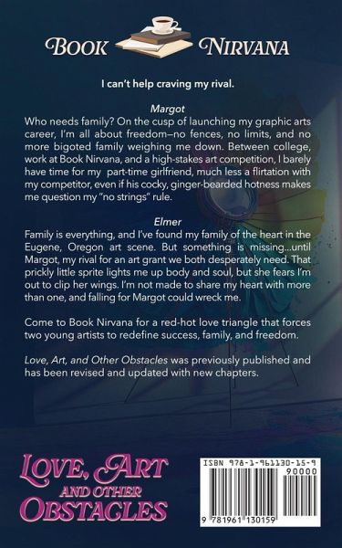 I can't help craving my rival. Margot Who needs family? On the cusp of launching my graphic arts career, I'm all about freedom-no fences, no limits, and no more bigoted family weighing me down. Between college, work at Book Nirvana, and a high-stakes art competition, I barely have time for my part-time girlfriend, much less a flirtation with my competitor, even if his cocky, ginger-bearded hotness makes me question my "no strings" rule. Elmer Family is everything, and I've found my family of the heart in the Eugene, Oregon art scene. But something is missing...until Margot, my rival for an art grant we both desperately need. That prickly little sprite lights me up body and soul, but she fears I'm out to clip her wings. I'm not made to share my heart with more than one, and falling for Margot could wreck me. Come to Book Nirvana for a red-hot love triangle that forces two young artists to redefine success, family, and freedom. Love, Art, and Other Obstacles was previously published and has been revised and updated with new chapters.