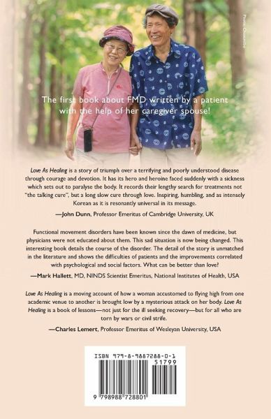 'Functional Movement Disorder' (FMD) is a disease not yet clearly identified why it happens and how it can be cured, nevertheless causing fearful involuntary movements of the body such as severe muscle spasms and paralysis, affecting physical functioning and making basic daily life impossible. It causes insomnia, indigestion, perspiration, depression, and shortness of breath, and pain to both the patient and family members. This book offers a vivid account of a couple's devoted emotional struggles with FMD syndrome, published for the first time in Korean and now in English. Composed of three main parts, the first and third parts were written by Young-hee Shim, the patient who suffered severely from FMD, and the second part by Sang-Jin Han, her husband and care-giver as well. Part 1 describes the onset and progression of the disease, its symptoms, the recuperation process including medical examinations and diagnoses, drug treatment, and exercise therapy. Part 3 describes the day-to-day course of relearning everything anew beginning from breathing and stretching up to the recovery stage beginning with therapeutic walks. Part 2 shows the care-giver's observation and records of the factual trajectories of the illness in great detail, in a meticulously careful and reflexive manner, thereby candidly disclosing his lived experience of what love means and how family supports could have continued. When someone in the family becomes ill, it affects the entire family. Anxiety eats away at the soul, and disease even more so. As the saying goes, 'A long illness will break even the most filial son'. The family member caring for the patient suffers as much as the patient, and is placed in a difficult situation that requires patience and dedication. However, readers of the book will meet a warm couple and their family and friends, who comfort and care for each other even in times of extreme pain and fatigue. The book offers a moving story fully describing how the patient, despite the lack of memories except her own experiences of illness could have recovered her narratives and combined them into the vivid daily records prepared by husband while she immersed into sleeping every night. The two Korean co-authors, Professor Han at Seoul National University and Professor Shim at Hanyang University remained closely united emotionally as husband and wife even in a desperate situation where there is no clear cure or prescription. In a chaotic situation due to the absence of reliable information, the book shows how husband led the whole family to a consensus, trusting on the treatment by the medical staffs while doing everything he can to support his spouse. Singing to his crying wife in the middle of the night as he tends to her needs, he is an active caregiver who seeks a vehicle for treatment through frequent walks and exercising rather than staying in bed, and who, while getting angry from time to time amid the frustration of his situation, soon realizes his fault and humbly apologizes for losing his temper. This can be said to be the power of an intellect that controls emotion and manages struggle through constant self-reflection, and at the same time, is a testimony to the couple's decades-long intellectual and mutually engaged social life. In this book, readers encounter a powerful example of love and care that avoids falling into the sad, gloomy, tragic atmosphere of battling illness. This is another virtue. In doing so, it may provide comfort and courage to patients and their families who are tired and depressed from the pain and responsibility that disease incurs. The authors hoped to be of some help to those patients and families suffering from FMD and other rare diseases, offering hope for recovery by their own example.