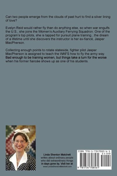 Can two people emerge from the clouds of past hurt to find a silver lining of love? Evelyn Reid would rather fly than do anything else, so when war engulfs the U.S., she joins the Women's Auxiliary Ferrying Squadron. One of the program's top pilots, she is tapped for pursuit plane training...the dream of a lifetime until she discovers the instructor is her ex-fiancé, Jasper MacPherson. Collecting enough points to rotate stateside, fighter pilot Jasper MacPherson is assigned to teach the WAFS how to fly the army way. Bad enough to be training women, but things take a turn for the worse when his former fiancée shows up as one of his students. Love at First Flight is a Christian historic romance.