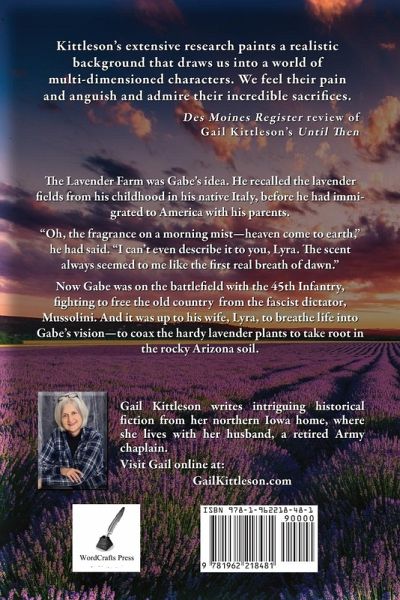 The Lavender Farm was Gabe's idea. He recalled the lavender fields from his childhood in his native Italy, before he had immigrated to America with his parents. "Oh, the fragrance on a morning mist-heaven come to earth," he had said. "I can't even describe it to you, Lyra. The scent always seemed to me like the first real breath of dawn." Now Gabe was on the battlefield with the 45th Infantry, fighting to free the old country from the fascist dictator, Mussolini, and it was up to his wife, Lyra, to breathe life into Gabe's vision - to coax the hardy lavender plants to take root in the rocky Arizona soil. And just when normal had re-established itself in her household, a knock came at the door. Her mother-in-law had gone to town that morning, so she grabbed baby Luca and clutched him to her chest as she opened the door. "Telegram, Ma'am. If you would sign right here, please." Since Gabe left, Lyra had wished for time to flee faster, and now it had brought her to this juncture. Suspended between what was and what would be, she faltered. A thousand thoughts waged war inside her head. A long breath. Another. The old couch covering, once soft velvet, scratched at her palm. This could not wait forever. The tearing sounded too loud, as if her soul were being rent in two. She sucked in a breath and read. REGRET TO INFORM YOU...