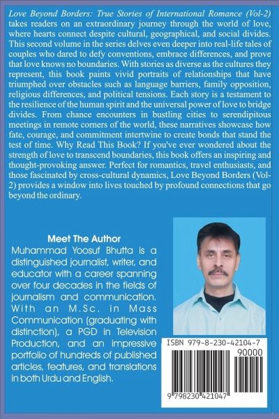 Love Beyond Borders: True Stories of International Romance (Vol-2) takes readers on an extraordinary journey through the world of love, where hearts connect despite cultural, geographical, and social divides. This second volume in the series delves even deeper into real-life tales of couples who dared to defy conventions, embrace differences, and prove that love knows no boundaries. With stories as diverse as the cultures they represent, this book paints vivid portraits of relationships that have triumphed over obstacles such as language barriers, family opposition, religious differences, and political tensions. Each story is a testament to the resilience of the human spirit and the universal power of love to bridge divides. From chance encounters in bustling cities to serendipitous meetings in remote corners of the world, these narratives showcase how fate, courage, and commitment intertwine to create bonds that stand the test of time. Key Themes Explored in the Book:Cultural Fusion and Celebration: Discover how love between people from different backgrounds fosters an appreciation for diversity and encourages the blending of traditions, languages, and values. These stories highlight how couples navigate their differences to create a shared, harmonious life. Overcoming Adversity: Whether dealing with disapproving families, societal expectations, or legal challenges, these couples prove that perseverance and belief in each other can overcome even the most daunting obstacles. Modern Romance and Technology: In an era where technology connects us across continents, several stories explore how digital platforms and social media have become powerful tools in bringing people together, proving that distance is no barrier to love. Emotional Growth and Transformation: Love across borders not only changes lives but also enriches them. The book examines how these relationships encourage emotional growth, broaden worldviews, and deepen understanding of oneself and others. Heartwarming and Heartbreaking Moments: While many stories celebrate happy endings, some reveal the bittersweet realities of international relationships, including sacrifices, misunderstandings, and the pain of separation. These moments add authenticity and depth, reminding readers that love's path is never without challenges. Why Read This Book? If you've ever wondered about the strength of love to transcend boundaries, this book offers an inspiring and thought-provoking answer. Perfect for romantics, travel enthusiasts, and those fascinated by cross-cultural dynamics, Love Beyond Borders (Vol-2) provides a window into lives touched by profound connections that go beyond the ordinary. Readers will find themselves captivated by tales of chance meetings that turn into lifelong commitments, families that embrace diversity, and lovers who defy the odds to create their own definitions of happiness. This collection not only entertains but also offers lessons in empathy, resilience, and the importance of embracing differences in an increasingly globalized world. A Global Celebration of Love: From the cobblestone streets of Europe to the bustling markets of Asia, the deserts of the Middle East, and beyond, these stories traverse the globe, each reflecting the unique challenges and triumphs of love that crosses borders. Whether you're a believer in fate, an advocate for cultural understanding, or simply someone who appreciates a beautifully told love story, Love Beyond Borders (Vol-2) promises to leave you inspired, moved, and perhaps even reflective about the boundaries you can overcome in your own life.