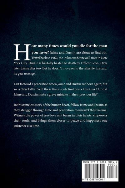 How many times would you die for the man you love? That's what Jaime and Dustin are about to find out. Travel back to 1969 and the infamous Stonewall riots. Dustin is brutally beaten to death by Officer Leon. Days later, Jaime dies too. But he doesn't move on to the afterlife. Instead, he gets revenge! Fast forward a generation when Jaime and Dustin are born again in the 1980s, but so is their killer! Will these three souls find peace this time? Or did Jaime and Dustin make a grave mistake in their previous life? In this timeless story of the human heart, follow Jaime and Dustin as they struggle through time and generation to unravel their karma. Witness the power of true love as it burns in their hearts, empowers their souls, and brings them closer to peace and happiness one existence at a time.