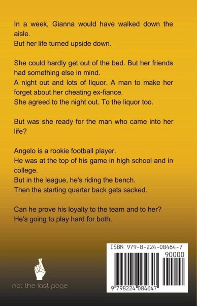 In a week, Gianna would have walked down the aisle. But her life turned upside down. She could hardly get out of the bed. But her friends had something else in mind. A night out and lots of liquor. A man to make her forget about her cheating ex-fiance. She agreed to the night out. To the liquor too. But was she ready for the man who came into her life? Angelo is a rookie football player. He was at the top of his game in high school and in college. But in the league, he's riding the bench. Then the starting quarter back gets sacked. Can he prove his loyalty to the team and to her? He's going to play hard for both.