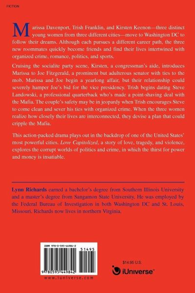 Marissa Davenport, Trish Franklin, and Kirsten Keenon-three distinct young women from three different cities-move to Washington DC to follow their dreams. Although each pursues a different career path, the three new roommates quickly become friends and find their lives intertwined with organized crime, romance, politics, and sports. Cruising the socialite party scene, Kirsten, a congressman's aide, introduces Marissa to Joe Fitzgerald, a prominent but adulterous senator with ties to the mob. Marissa and Joe begin a yearlong affair, but their relationship could severely hamper Joe's bid for the vice presidency. Trish begins dating Steve Landowski, a professional quarterback who's made a point-shaving deal with the Mafia. The couple's safety may be in jeopardy when Trish encourages Steve to come clean and sever his ties with organized crime. When the three women realize how closely their lives are interconnected, they devise a plan that could cripple the Mafia. This action-packed drama plays out in the backdrop of one of the United States' most powerful cities. Love Capitolized, a story of love, tragedy, and violence, explores the corrupt worlds of politics and crime, in which the thirst for power and money is insatiable.