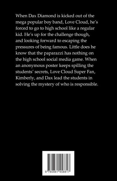 When Dax Diamond is kicked out of the mega popular boy band, Love Cloud, he's forced to go to high school like a regular kid. He's up for the challenge though, and looking forward to escaping the pressures of being famous. Little does he know that the paparazzi has nothing on the high school social media game. When an anonymous poster keeps spilling the students' secrets, Love Cloud Super Fan, Kimberly, and Dax lead the students in solving the mystery of who is responsible.