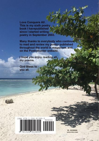 This is my sixth Spiritual Poetry Book which has all the Poems I have personally written throughout 2016. This book called " Love Conquers All " is available in print and hopefully ebook format soon. David Boyce is a Poetry writer from South Wales who has published over 700 poems worldwide within the past 13 years. Version 2 - 7th February 2017