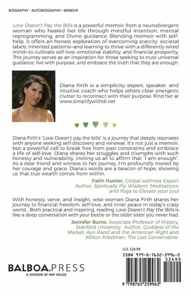 Love Doesn't Pay the Bills is a powerful memoir from a neurodivergent woman who healed her life through mindful intention, mental reprogramming, and Divine guidance. Blending memoir with self-help, it offers an honest exploration of overcoming scarcity, societal labels, inherited patterns-and learning to thrive with a differently wired mind, to cultivate self-love, emotional stability, and financial prosperity. This journey serves as an inspiration for those seeking to trust universal guidance, live with purpose, and embrace the truth that they are enough.