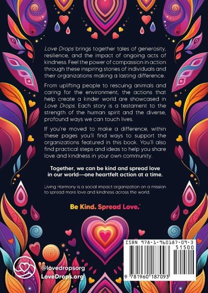 Love Drops brings together tales of generosity, resilience, and the impact of ongoing acts of kindness. Feel the power of compassion in action through these inspiring stories of individuals and their organizations making a lasting difference. From uplifting people to rescuing animals and caring for the environment, the actions that help create a kinder world are showcased in Love Drops. Each story is a testament to the strength of the human spirit and the diverse, profound ways we can touch lives. If you're moved to make a difference, within these pages you'll find ways to support the organizations featured in this book. You'll also find practical steps and ideas to help you share love and kindness in your own community. Together, we can be kind and spread love in our world-one heartfelt action at a time.