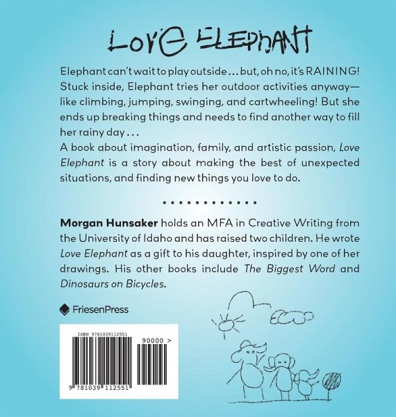 Elephant can't wait to play outside . . . but, oh no, it's RAINING! Stuck inside, Elephant tries her outdoor activities anyway-like climbing, jumping, swinging, and cartwheeling! But she ends up breaking things and needs to find another way to fill her rainy day . . . A book about imagination, family, and artistic passion, Love Elephant is a story about making the best of unexpected situations, and finding new things you love to do.