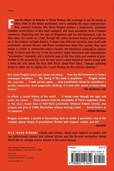 From the Whore of Babylon to Pretty Woman, the exchange of sex for money is often cited as the oldest profession. Now, eminent historian Nils Johan Ringdal delivers a magisterial, extremely readable world history of this most maligned-and most persistent-form of human commerce. Beginning with the epic of Gilgamesh, the Old Testament, and ancient cultures from Greece to India and beyond, Love for Sale takes the reader on a tour through the entire recorded history of prostitution up to the modern red-light district. It shows how different societies have dealt with prostitutes: ancient Greece, Rome, and India incorporated them into several social echelons, including the priestess class; their close relations with artists in 19th-century Europe made them muses to the modern sensibility; and the Victorians campaigned against them. Love for Sale closes with Sydney Biddle Barrows, the rise of the sex-workers' rights movement and contemporary "sex-positive" feminism, and a realistic look at the true risks and rewards of prostitution in the present day.
