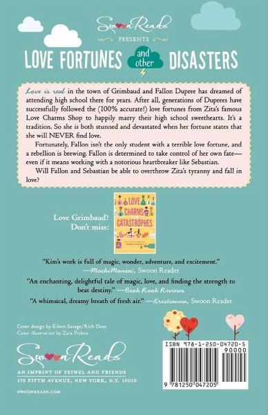 This whimsical, fairy tale of a novel stars fascinating, quirky characters, a dash of magical realism, and a unique setting sure to charm the hearts of readers young and old. Love is real in the town of Grimbaud and Fallon Dupree has dreamed of attending high school there for years. After all, generations of Duprees have successfully followed the (100% accurate!) love fortunes from Zita's famous Love Charms Shop to happily marry their high school sweethearts. It's a tradition. So she is both stunned and devastated when her fortune states that she will NEVER find love. Fortunately, Fallon isn't the only student with a terrible love fortune, and a rebellion is brewing. Fallon is determined to take control of her own fate-even if it means working with a notorious heartbreaker like Sebastian. Will Fallon and Sebastian be able to overthrow Zita's tyranny and fall in love? Debut author Kimberly Karalius delivers a delightfully charming story of love and rebellion in Love Fortunes and Other Disasters, chosen by readers like you for Macmillan's young adult imprint Swoon Reads. Praise for Love Fortunes and Other Disasters: "An unusual love story that will delight readers."-School Library Journal "I am now a walking, talking heart-eye emoji after reading this book." -Catherine Tinker, reader on SwoonReads.com "The writing is delicious, and the plot clever and new." -Janelle, reader on SwoonReads.com