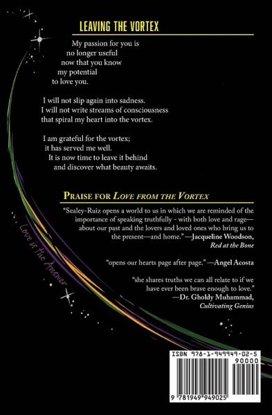 Love from the Vortex & Other Poems (Kaleidoscope Vibrations, LLC), is poet and scholar-activist Yolanda Sealey-Ruiz's first full-length collection. An archaeological exploration on love and intimacy, the book charts her journey of finding and losing love over the span of three decades with six different men who came into her life at various times, but also offers a universal take on what can happen when one seeks love and connection with others, and the lessons that follow when that connection and love is lost. Revealing moments of happiness, fantasy, frustration, and eventually dealing with the dissolution of relationships, the book moves beyond these anticipated stages to moments of grace and beauty that come with the discovery and practice of self love, and a more fuller understanding of what it means to truly love someone as you love yourself.