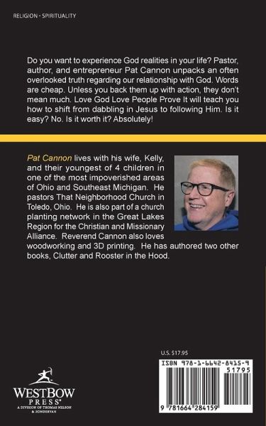 Do you want to experience God realities in your life? Pastor, author, and entrepreneur Pat Cannon unpacks an often overlooked truth regarding our relationship with God. Words are cheap. Unless you back them up with action, they don't mean much. Love God Love People Prove It will teach you how to shift from dabbling in Jesus to following Him. Is it easy? No. Is it worth it? Absolutely!
