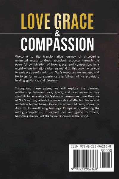 Welcome to the transformative journey of discovering unlimited access to God's abundant resources through the powerful combination of love, grace, and compassion. In a world where limitations often surround us, this book invites you to embrace a profound truth: God's resources are limitless, and He longs for us to experience the fullness of His provision, healing, guidance, and blessings. Throughout these pages, we will explore the dynamic relationship between love, grace, and compassion as key conduits for accessing God's abundant resources. Love, the core of God's nature, reveals His unconditional affection for us and our fellow human beings. Grace, His unmerited favor, opens the door to His overflowing blessings. Compassion, reflecting His mercy, compels us to extend love and grace to others, becoming channels of His divine resources in the world. Each chapter delves deep into these themes, offering insights, practical guidance, and biblical truths that will inspire and empower you to tap into the limitless resources available through God's love, grace, and compassion. We aim to provide comprehensive exploration and meaningful reflections, enabling you to truly grasp the depth of God's generosity. Chapter Summaries: Understanding God's Unlimited Resources: Exploring His Abundance and Provision Discover the vastness of God's resources and how they exceed human limitations. Uncover the biblical foundation of God's provision and His desire for us to experience abundance.