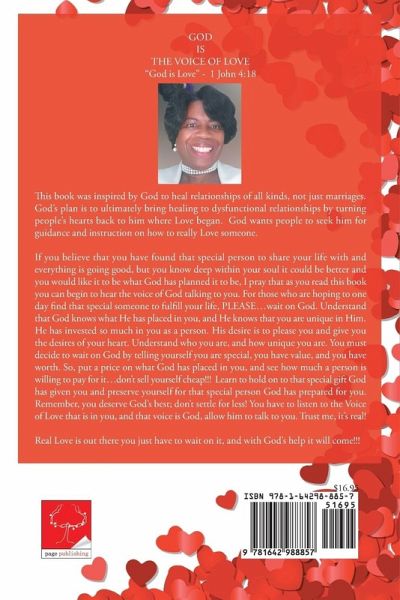 GOD IS THE VOICE OF LOVE "God is Love" - I John 4:18 This book was inspired by God to heal relationships of all kind, not just marriages. God's plan is to ultimately bring healing to dysfunctional relationships by turning people hearts back to him where Love began. God wants people to seek him for guidance and instruction on how to really Love someone. If you believe that you have found that special person to share your life with and everything is going good but, you know deep within your soul it could be better and you would like it to be what God has planned it to be, I pray that as you read this book you can began to hear the voice of God talking to you. For those who are hoping to one day find that special someone to fulfill your life, PLEASE...wait on God. Understand that God knows what He has placed in you, and He knows that you are unique in Him. He has invested so much in you as a person. His desire is to please you and give you the desires of your heart. You must know that He has the perfect person that he's preparing for you, one that will love you in a very special way. Understand who you are, and how unique you are. (Unique means that you are the only one designed for that particular person.) That particular person is hard to find when we don't want to wait on God, so that He can lead us to them. You must decide to wait on God by telling yourself you are special, you have value, and you have worth, because you can't think more highly of someone else than you think of yourself. So, put a price on what God has placed in you, and see how much a person is willing to pay for it...don't sell yourself cheap!!! Learn to hold on to that special gift God has given you and preserve yourself for that special person God has prepared for you, to Love you with the Love that God has given them to love only you! Remember, you deserve God's best; don't settle for less! You have to listen to the Voice of Love that is in you, and that voice is God allow him to talk to you. Trust me, it's real! "Be anxious for nothing, but in everything by prayer and supplication, with thanksgiving, let your requests be made known to God" - Philippians 4:6-7 Real Love is out there you just have to wait on it, and with God's help it will come!!!