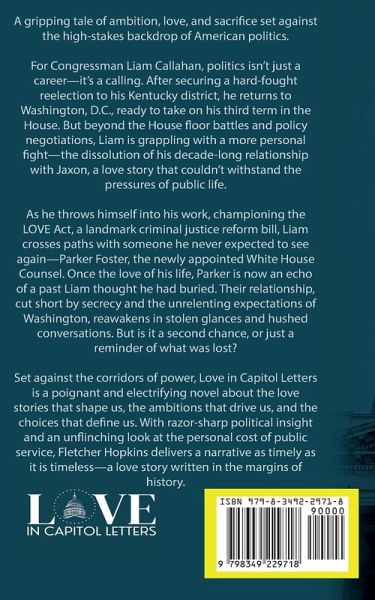 A gripping tale of ambition, love, and sacrifice set against the high-stakes backdrop of American politics. For Congressman Liam Callahan, politics isn't just a career-it's a calling. After securing a hard-fought reelection to his Kentucky district, he returns to Washington, D.C., ready to take on his third term in the House. But beyond the House floor battles and policy negotiations, Liam is grappling with a more personal fight-the dissolution of his decade-long relationship with Jaxon, a love story that couldn't withstand the pressures of public life. As he throws himself into his work, championing the LOVE Act, a landmark criminal justice reform bill, Liam crosses paths with someone he never expected to see again-Parker Foster, the newly appointed White House Counsel. Once the love of his life, Parker is now an echo of a past Liam thought he had buried. Their relationship, cut short by secrecy and the unrelenting expectations of Washington, reawakens in stolen glances and hushed conversations. But is it a second chance, or just a reminder of what was lost? Set against the corridors of power, Love in Capitol Letters is a poignant and electrifying novel about the love stories that shape us, the ambitions that drive us, and the choices that define us. With razor-sharp political insight and an unflinching look at the personal cost of public service, Fletcher Hopkins delivers a narrative as timely as it is timeless-a love story written in the margins of history. Perfect for fans of political dramas and deeply human stories of love, resilience, and the pursuit of something greater than oneself. Perfect for fans of: ¿¿¿¿ LGBTQ+ political dramas ¿¿ Forbidden romances and second-chance love stories ¿¿¿¿¿ High-stakes political fiction ¿¿¿¿¿ Literary fiction with introspective, emotionally charged storytelling Readers are calling it: ¿¿¿¿ "A passionate, politically charged love story." ¿¿¿¿ "A heart-wrenching exploration of love and power." ¿¿¿¿ "A novel that feels as historic as it is intimate." If you love stories about love overcoming impossible odds, about ambition colliding with the heart's deepest desires, and about characters who fight for what matters-even when it costs them everything-then this is the book for you.