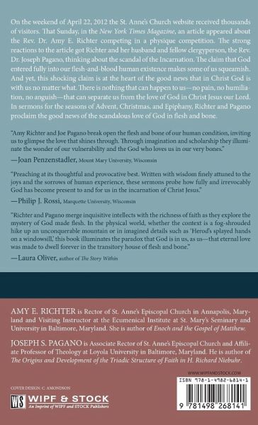 On the weekend of April 22, 2012 the St. Anne's Church website received thousands of visitors. That Sunday, in the New York Times Magazine, an article appeared about the Rev. Dr. Amy E. Richter competing in a physique competition. The strong reactions to the article got Richter and her husband and fellow clergyperson, the Rev. Dr. Joseph Pagano, thinking about the scandal of the Incarnation. The claim that God entered fully into our flesh-and-blood human existence makes some of us squeamish. And yet, this shocking claim is at the heart of the good news that in Christ God is with us no matter what. There is nothing that can happen to us--no pain, no humiliation, no anguish--that can separate us from the love of God in Christ Jesus our Lord. In sermons for the seasons of Advent, Christmas, and Epiphany, Richter and Pagano proclaim the good news of the scandalous love of God in flesh and bone.