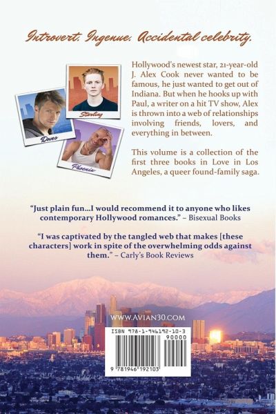 Introvert. Ingenue. Accidental celebrity. Hollywood's newest star, 21-year-old J. Alex Cook never wanted to be famous, he just wanted to get out of Indiana. But when he hooks up with Paul, a writer on a hit TV show, Alex is thrown into a web of relationships involving friends, lovers, and everything in between. This anthology contains the first three books in the Love in Los Angeles series: Starling, Doves, and Phoenix. Please be aware, this is high-heat, high-angst romance that includes characters with a past history of self-harm.