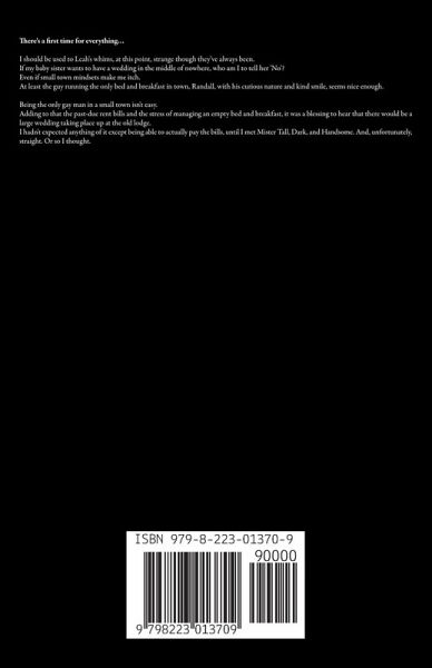 There's a first time for everything… I should be used to Leah's whims, at this point, strange though they've always been. If my baby sister wants to have a wedding in the middle of nowhere, who am I to tell her 'No'? Even if small town mindsets make me itch. At least the guy running the only bed and breakfast in town, Randall, with his curious nature and kind smile, seems nice enough. Being the only gay man in a small town isn't easy. Adding to that the past-due rent bills and the stress of managing an empty bed and breakfast, it was a blessing to hear that there would be a large wedding taking place up at the old lodge. I hadn't expected anything of it except being able to actually pay the bills, until I met Mister Tall, Dark, and Handsome. And, unfortunately, straight. Or so I thought.