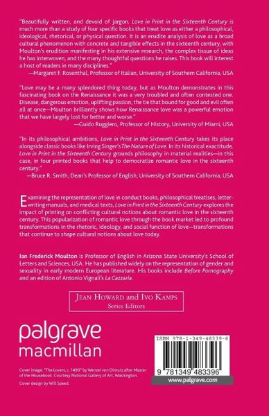"Love may be a many splendored thing today, but as Ian Frederick Moulton demonstrates in this fascinating book on the Renaissance it was a very troubled and often contested one. Disease, dangerous emotion, uplifting passion, the tie that bound for good and evil often all at once - Moulton brilliantly shows how Renaissance love was a powerful emotion that we have largely lost for better and worse." - Guido Ruggiero, Professor of History, University of Miami, USA