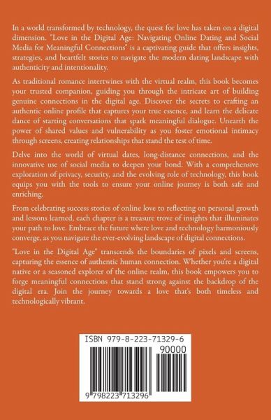 In a world transformed by technology, the quest for love has taken on a digital dimension. "Love in the Digital Age: Navigating Online Dating and Social Media for Meaningful Connections" is a captivating guide that offers insights, strategies, and heartfelt stories to navigate the modern dating landscape with authenticity and intentionality. As traditional romance intertwines with the virtual realm, this book becomes your trusted companion, guiding you through the intricate art of building genuine connections in the digital age. Discover the secrets to crafting an authentic online profile that captures your true essence, and learn the delicate dance of starting conversations that spark meaningful dialogue. Unearth the power of shared values and vulnerability as you foster emotional intimacy through screens, creating relationships that stand the test of time. Delve into the world of virtual dates, long-distance connections, and the innovative use of social media to deepen your bond. With a comprehensive exploration of privacy, security, and the evolving role of technology, this book equips you with the tools to ensure your online journey is both safe and enriching. From celebrating success stories of online love to reflecting on personal growth and lessons learned, each chapter is a treasure trove of insights that illuminates your path to love. Embrace the future where love and technology harmoniously converge, as you navigate the ever-evolving landscape of digital connections. "Love in the Digital Age" transcends the boundaries of pixels and screens, capturing the essence of authentic human connection. Whether you're a digital native or a seasoned explorer of the online realm, this book empowers you to forge meaningful connections that stand strong against the backdrop of the digital era. Join the journey towards a love that's both timeless and technologically vibrant.