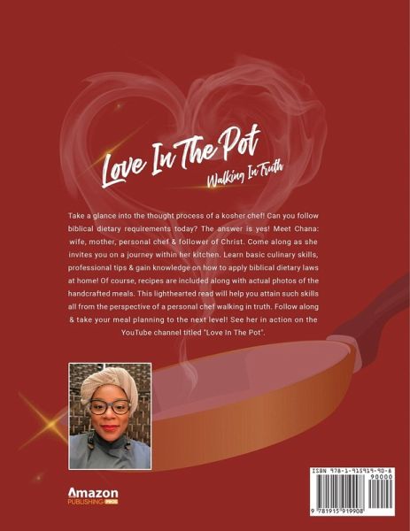 Take a glance into the thought process of a kosher chef! Can you follow biblical dietary requirements today? The answer is yes! Meet Chana: wife, mother, personal chef & follower of Christ. Come along as she invites you on a journey within her kitchen. Learn basic culinary skills, professional tips & gain knowledge on how to apply biblical dietary laws at home! Of course, recipes are included along with actual photos of the handcrafted meals. This lighthearted read will help you attain such skills all from the perspective of a personal chef walking in truth. Follow along & take your meal planning to the next level! See her in action on the YouTube channel titled 'Love In The Pot",