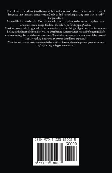 Crater Omen, a madman jilted by cosmic betrayal, sets loose a chain reaction at the center of the galaxy that threatens existence itself, only to find something lurking there that he hadn't bargained for. Meanwhile, his twin brother Oort desperately tries to hold on to the woman they both love, and must locate Diego Hadron: the sole hope for stopping Crater. Can Oort restore the Higg's field to its metastable state and bring to light that familiar presence hiding in the heart of darkness? Will he do it before Crater realizes his goal of ending all life and eradicating the very fabric of spacetime? Can either succeed as the cosmos unfolds beneath them, revealing a new reality no one could have expected? With the universe as their chessboard, the brothers Omen play a dangerous game with rules they're just beginning to understand...