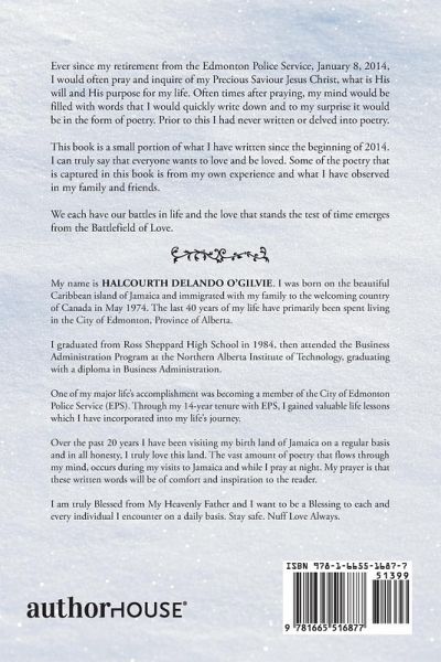 Ever since my retirement from the Edmonton Police Service, January 8, 2014, I would often pray and inquire of my Precious Saviour Jesus Christ, what is His will and His purpose for my life. Often times after praying, my mind would be filled with words that I would quickly write down and to my surprise it would be in the form of poetry. Prior to this I had never written or delved into poetry. This book is a small portion of what I have written since the beginning of 2014. I can truly say that everyone wants to love and be loved. Some of the poetry that is captured in this book is from my own experience and what I have observed in my family and friends. We each have our battles in life and the love that stands the test of time emerges from the Battlefield of Love.