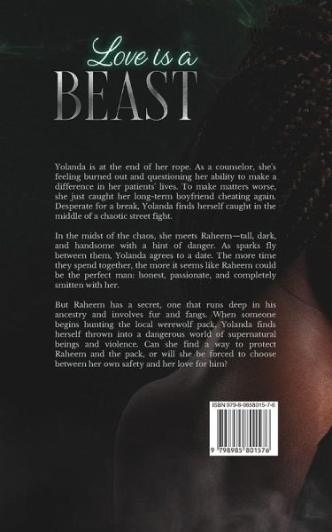 Yolanda is at the end of her rope as a counselor; she's feeling burned out and questions her ability to make a difference in her patients' lives. To make matters worse, she just caught her long-term boyfriend cheating again. Feeling on edge and in desperate need of a break, she finds herself caught in the middle of a street fight. In the midst of the chaos, she meets Raheem-tall, dark, and handsome with a hint of danger. As sparks fly between them, Yolanda agrees to a date. The more time they spend together, the more it seems like Raheem could be the perfect man: honest, passionate, and completely committed to her. But Raheem has a secret that runs deep in his ancestry and involves fur and fangs. When someone begins hunting the local werewolf pack, Yolanda finds herself thrown into a dangerous world of supernatural beings and violence. Can she find a way to protect Raheem, or will she be forced to choose between her own safety and her love for him?
