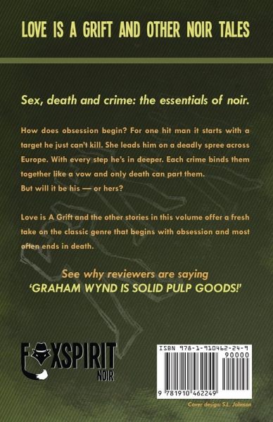 Love is a Grift by Graham Wynd Cover and layout by S.L. Johnson Images Sex, Death and Crime: The essentials of Noir. How does obsession begin? For one hit man it starts with a target he just can't kill. She leads him on a deadly spree across Europe. With every step he's in deeper. Each crime binds them together like a vow and only death can part them. But will it be his… or hers? Love is a Grift and the other stories in this collection offer a fresh take on a classic genre, that begins with obsession and most often ends with death.