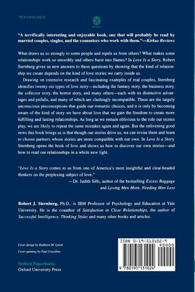 In this groundbreaking work, Robert Sternberg gives us new answers to these questions by showing that the kind of relationship we create depends on the kind of love stories we carry inside us. Drawing on extensive research and fascinating examples of real couples, Sternberg identifies 26 types of love story -- including the fantasy story, the business story, the collector story, the horror story, and many others -- each with its distinctive advantages and pitfalls, and many of which are