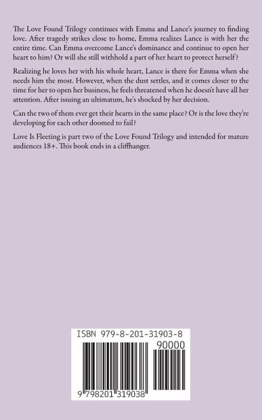 The Love Found Trilogy continues with Emma and Lance's journey to find love. Can Emma overcome Lance's dominance and continue to open her heart to him? When a tragedy strikes close to home, Emma realizes that Lance is with her the entire time. Can she love him or will she still withhold a part of her heart from him even though he has proved himself to her? Lance is there for Emma during her time of sorrow and realizes he has come to love her with all his heart. However, when it comes closer to the time for her to open her business he feels threatened that he doesn't have her whole attention. After giving her an ultimatum regarding her business or him he is shocked by her decision. Can the two of them ever get their hearts in the same place, or is the love they've developed for each other doomed to fail? Read part two of the Love Found Trilogy to ride along on their journey to finding love. Mature audiences, not recommended for anyone under the age of 18. Approx. 80,000 words