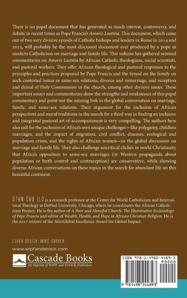 There is no papal document that has generated as much interest, controversy, and debate in recent times as Pope Francis's Amoris Laetitia. This document, which came out of two very divisive synods of Catholic bishops and leaders in Rome in 2014 and 2015, will probably be the most discussed document ever produced by a pope in modern Catholicism on marriage and family life. This volume has gathered seminal commentaries on Amoris Laetitia by African Catholic theologians, social scientists, and pastoral workers. They offer African theological and pastoral responses to the principles and practices proposed by Pope Francis and the Synod on the family on such contested issues as same-sex relations, divorce and remarriage, and reception and denial of Holy Communion in the church, among other divisive issues. These important essays and commentaries show the strengths and weaknesses of this papal commentary and point out the missing link in the global conversation on marriage, family, and same-sex relations. Their argument for the inclusion of African perspectives and moral traditions in the search for a third way in finding an inclusive and integrated pastoral art of accompaniment is very compelling. The authors here also call for the inclusion of Africa's own unique challenges--like polygamy, childless marriages, and the impact of migration, civil conflict, diseases, ecological and population crises, and the rights of African women--in the global discussion on marriage and family life. They also challenge uncritical cliches in world Christianity that Africa's opposition to same-sex marriages (or Western propaganda about population or birth control and contraception) are conservative, while showing diverse African conversations on these topics in the search for abundant life on this beautiful continent.