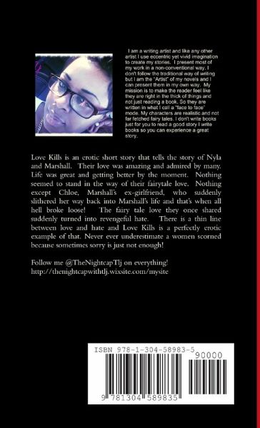 Love Kills by Tlj is an erotic tale about the love story of Nyla and Marshall. They had an amazing love and their relationship was admired by many. Life was great for the young love birds and getting better by the minute. Seemingly, there was nothing that could stand in the way of their fairy-tale love. Nothing except Chloe, Marshall's ex-girlfriend, who suddenly slithered her way back into Marshall's life and that's when all hell broke loose! The fairy tale love they once shared suddenly turned into revengeful hate. There is a thin line between love and hate and Love Kills is a perfectly erotic example of that. Never ever underestimate a women scorned because sometimes sorry is just not enough!